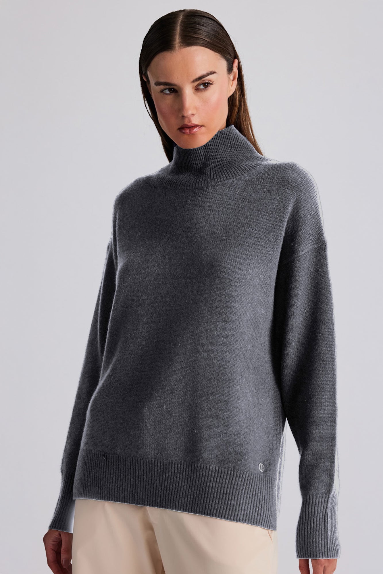 Experience timeless elegance with the Mira, a high-neck, relaxed-fit sweater crafted from luxurious, ultra-soft Mongolian cashmere that is machine washable for easy care. This sophisticated piece showcases intricate knitted detailing at the shoulders and features wide ribbed trims at the neckline, hem, and cuffs, adding texture and structure. Designed for both comfort and style, the Mira is perfect for layering or wearing on its own, delivering cozy warmth with effortless refinement.